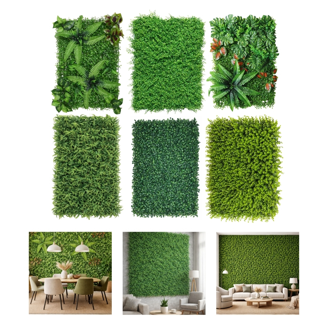 Perfeita para uso como cerca artificial ou parede de plantas, um ótimo recurso para adicionar um pouco de vegetação. Eles são fáceis de montar, pois cada peça simplesmente se encaixa para criar uma cobertura uniforme. Os revestimentos de parede apresentam uma aparência natural, sem complicações com um "apelo visual" instantâneo, se adaptam a qualquer muro ou varanda.
